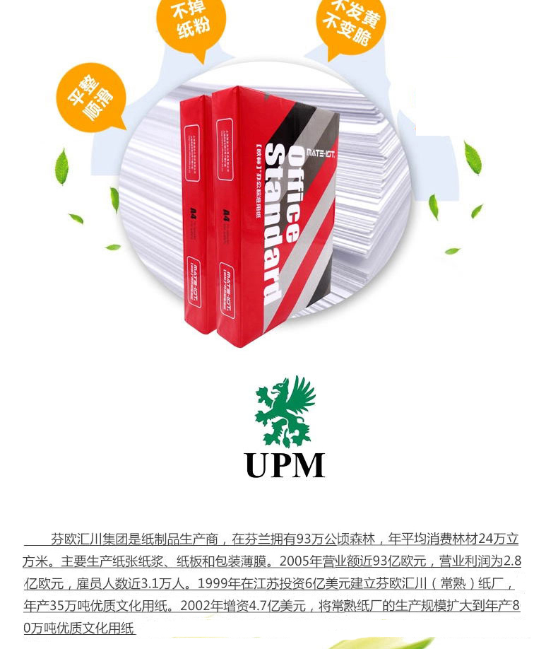 UPM黃欣樂 70克 A4 中白復印紙 500張/包 8包/箱