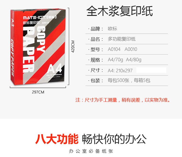 歐標A4復印紙70g A0007
